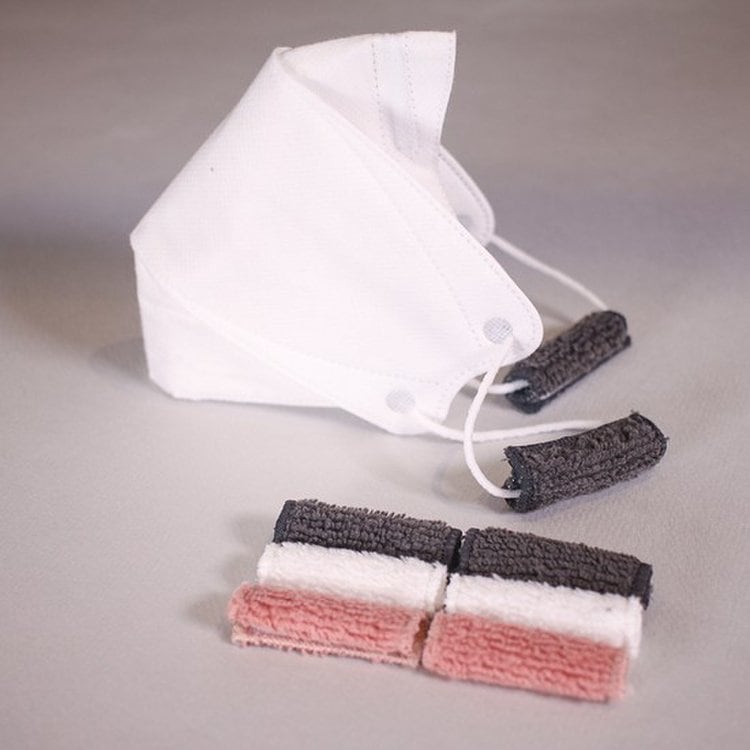 먼저 가장 큰 아이의 마스크에 마스크 이어 디펜더를 부착했습니다.
