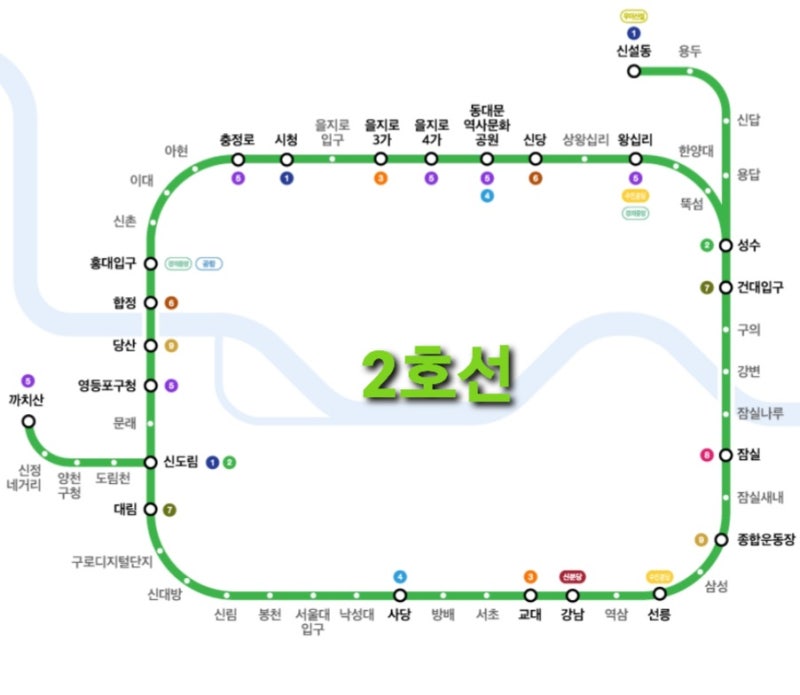 서울에서 집을 사고 싶다면 2호선 반경 2~3km 이내에서 사면 후회하지 않을 것이라고 한다. 2호선은 서울의 핵심지역을 모두 통과한다. 유일한 순환노선으로 강남, 잠실, 성수, 왕십리, 시청, 홍대, 영등포를 통과한다. 2호선을 타면 서울 시내 모든 노선으로 환승이 가능합니다. 다만 순환 노선이므로 한 방향으로만 돌면 시간이 너무 오래 걸리기 때문에 시계 방향으로 운행하는 내부 순환 노선과 시계 방향으로 운행하는 외부 순환 노선으로 나누어집니다. 시계 반대방향으로 달립니다. 강남에서 홍대 방향으로 이동 시 (내부 순환 이용)