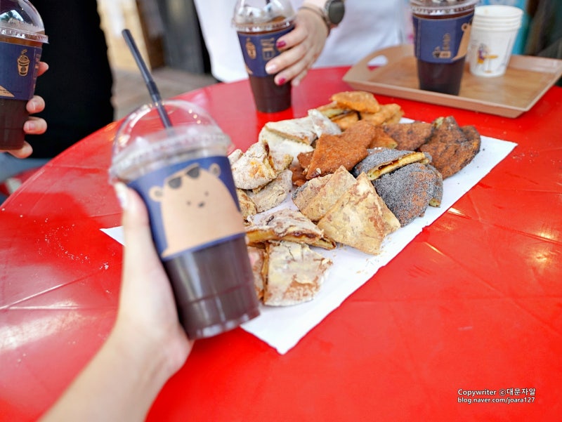 속초관광수산시장 주차장 입구로 나와서 왼쪽을 보면 바로 이 곳이 나오니 찾기 쉽습니다! 오후 1시부터 오후 8시까지 영업하며, 점심 식사 후 디저트 시간에 딱 맞습니다. 오픈하자마자 찾아보니 손님들이 줄을 서더라구요. 지금은 너무 혼잡해요!