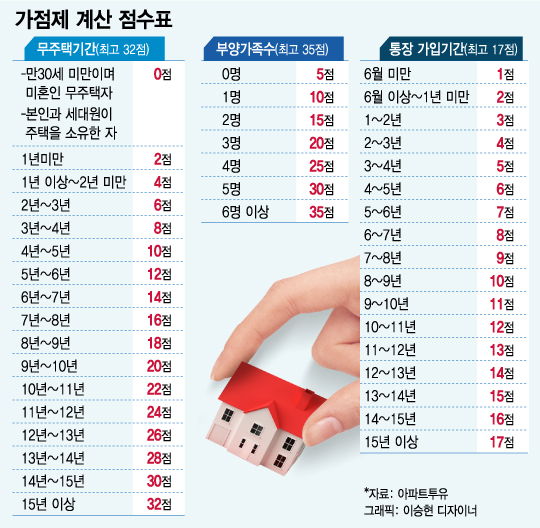 우대받을 수 있는 것들 우리나라는 땅이 한정되어 있지만 수도권에는 인구가 밀집되어 거주하는 곳이 많아 주택 구입 과정에서 추첨제도를 활용하고 있다. 일정 조건을 충족한 사람이 신청하는 제도로, 아파트 청약점수에 따라 우대를 받을 경우 더 유리하게 적용되는 경우가 많다. 이런 요소에 따라 순위가 결정되는 시스템을 가산점 시스템이라고 하는데, 이에 대해 잘 모르는 분들이 많습니다. 따라서 오늘은 이 경우 어떤 조건을 충족해야 하는지, 임계점수는 얼마인지 알아보는 시간을 갖도록 하겠습니다. 1등이 중요하기 때문에 사실 이런 가산점 제도 외에도 추첨을 통해서만 얻을 수 있습니다. 그러나 이 경우 전체 볼륨이 상대적으로 작아 적용이 어렵다. 하지만 한 가지 알아두셔야 할 점은 아파트 청약점수를 걱정하기 전에 먼저 만들어 보아야 한다는 것입니다. 아무리 점수가 높아도 1순위보다 2순위를 먼저 선택하는 예가 없기 때문에 먼저 각 절차에 대한 정보를 잘 찾아보셔야 합니다. 첫 번째 요구 사항이 충족된 후에는 더 나은 위치를 확보하기 위해 정보를 숙지해야만 좋은 결과를 얻을 수 있습니다. 무주택 기간에 따른 차이 첫째, 아파트 청약점수에 포함되는 항목에는 무주택 기간이 포함된다. 총점 32점으로 구성되며, 최대 기간은 15년 이상입니다. 1년 미만인 경우에는 2점을 적용하고, 1년~2년은 4점, 2년~3년 미만은 6점을 적용하여 점차적으로 2점씩 증가시킨다. 총 15년이 지나면 최대 32점을 받을 수 있습니다. 위의 경우 30세부터 시작하며, 결혼한 경우에는 혼인신고일을 기준으로 합니다. 이는 집을 소유하지 않고도 일정 기간이 지나면 달성하기 어렵지 않은 조건입니다. 그러므로 다른 사항도 꼼꼼히 확인하여 높은 점수를 받는 것이 유리합니다. 부양가족 수와 관련된 두 번째 항목은 부양가족 수에 따른 차이이다. 최근에는 핵가족이 대중화되면서 여기서 만점을 받는 경우가 많지 않지만, 익숙해지면 더 좋은 아파트청약점수를 얻을 수 있습니다. 가산점 상한은 35점으로 정해져 있으나, 부양가족이 0인 경우에도 5점을 받게 됩니다. 또한, 추가 인원 1인당 5포인트가 추가되며, 6명이 초과할 경우 더 이상 추가 포인트를 받을 수 없습니다. 주민등록등본을 기준으로 하며, 부모의 경우 사본 제출 후 3년이 지나야 인정된다는 점 참고하시기 바랍니다. 가입기간에 따라 부여됩니다. 마지막 항목은 구독계좌 개설 후 구독기간에 따라 추가 포인트가 부여됩니다. 총 17점으로, 처음 6개월 미만은 1점, 6~12개월은 2점, 다음 해부터 1점씩 증가한다. 총 15년의 제한이 있으며 이 기간 이후에는 추가가 이루어지지 않습니다. 이들 아파트 청약 점수를 모두 합치면 총 84점을 얻을 수 있지만 현실적으로 모든 조항에 적용하기는 어렵다. 따라서 일반적으로 60점을 넘으면 높은 점수로 간주되며, 투기지역이라면 70점 이상의 높은 점수가 요구된다는 점을 알아두시면 좋습니다. 더 나아가, 정보를 숙지하고 장기적인 계획을 세우신다면 향후 주택 구입에 있어 더욱 효율적일 수 있으니 전략적으로 접근해 보시기 바랍니다.