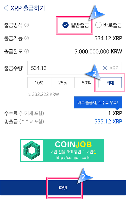 따라서 대부분의 경우 바로 돈을 인출하기보다는 먼저 소액을 공제하고, 돈이 제대로 입금되면 남은 금액을 전액 인출하는 경우가 많습니다. 최소 출금 가능 금액이 있을 수 있으니, 이 부분을 잘 확인하신 후 작성해 주시기 바랍니다. 출금시 수수료가 부과될 수 있으니 주의하시기 바랍니다. 출금 수수료가 발생하는지 확인하려면 여기를 확인하세요.